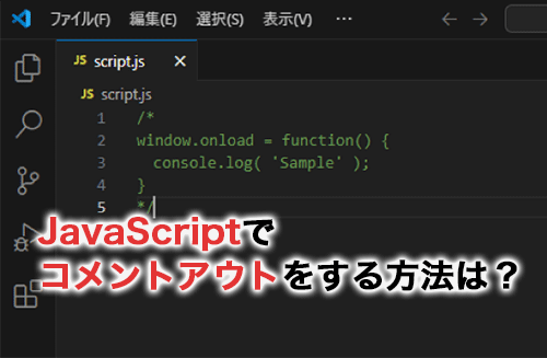 JavaScriptのコメントアウトとは、必要ないプログラムを無効化したり、メモ書きを残したりできる機能です。