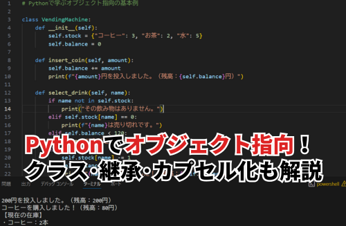この記事では、Pythonで学ぶオブジェクト指向入門として、クラス・継承・カプセル化といった基本概念をやさしく解説します。