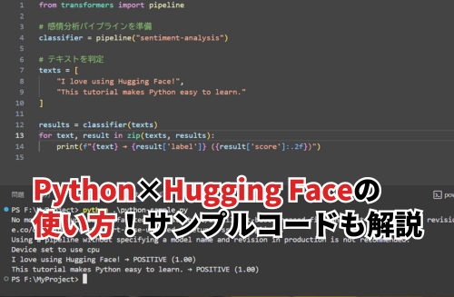この記事では、PythonでHugging Faceの使い方として、インストール方法から実行手順、さらにサンプルコードを使った実践例までをわかりやすく解説します。
